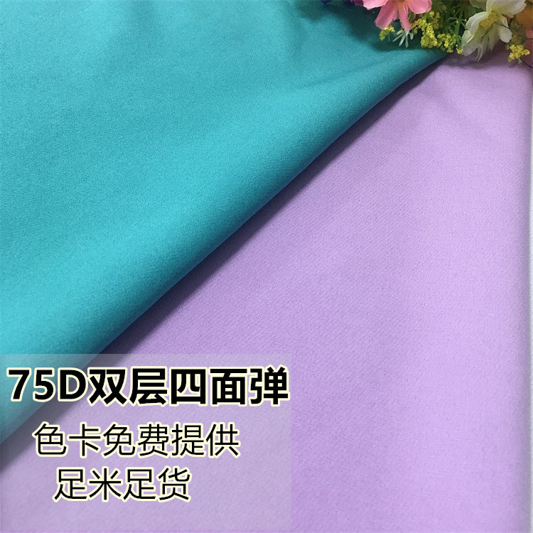现货供应75D加厚双层四面弹面料 女装 连衣裙 礼服 套装 时装面料